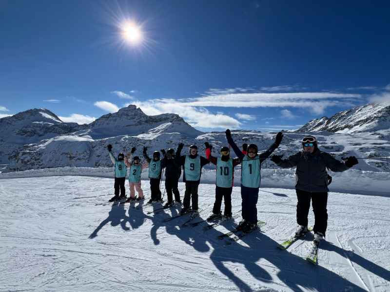 Danach fuhren wir mit der Gletscherbahn nach oben ins Skigebiet. Auf der Piste übten wir verschiedene Techniken, zum Beispiel Kurvenfahren, paralleles Fahren und den Übergang vom Pflug ins Parallele. Das machte viel Spaß und man konnte sich dabei gut verbessern.